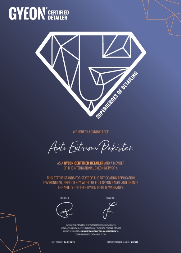2025Achieved GYEON Certified Detailer status (CD2442) with ability to offer Infinite Warranty.